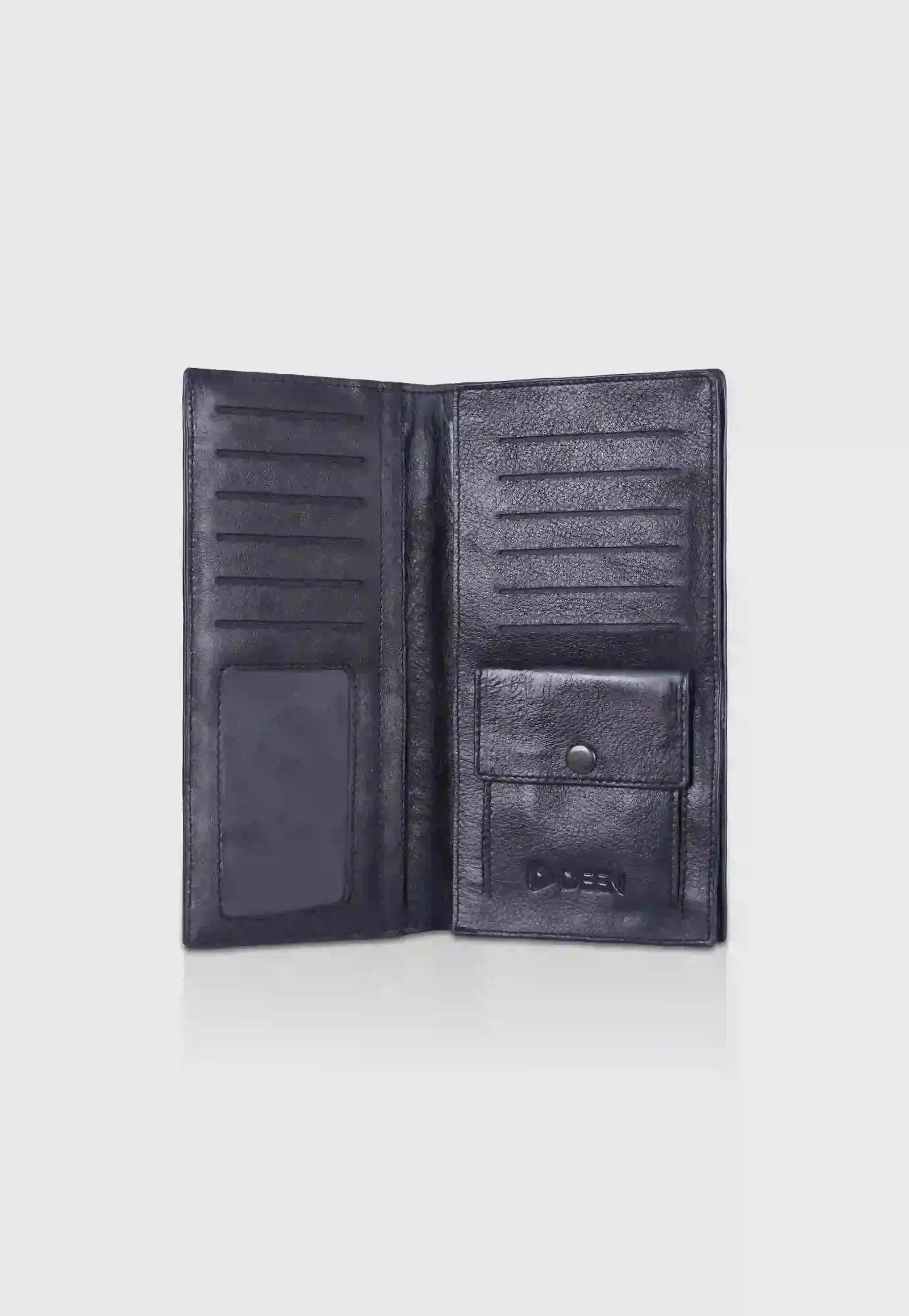 Black Leather Coin Pocket Long Wallet