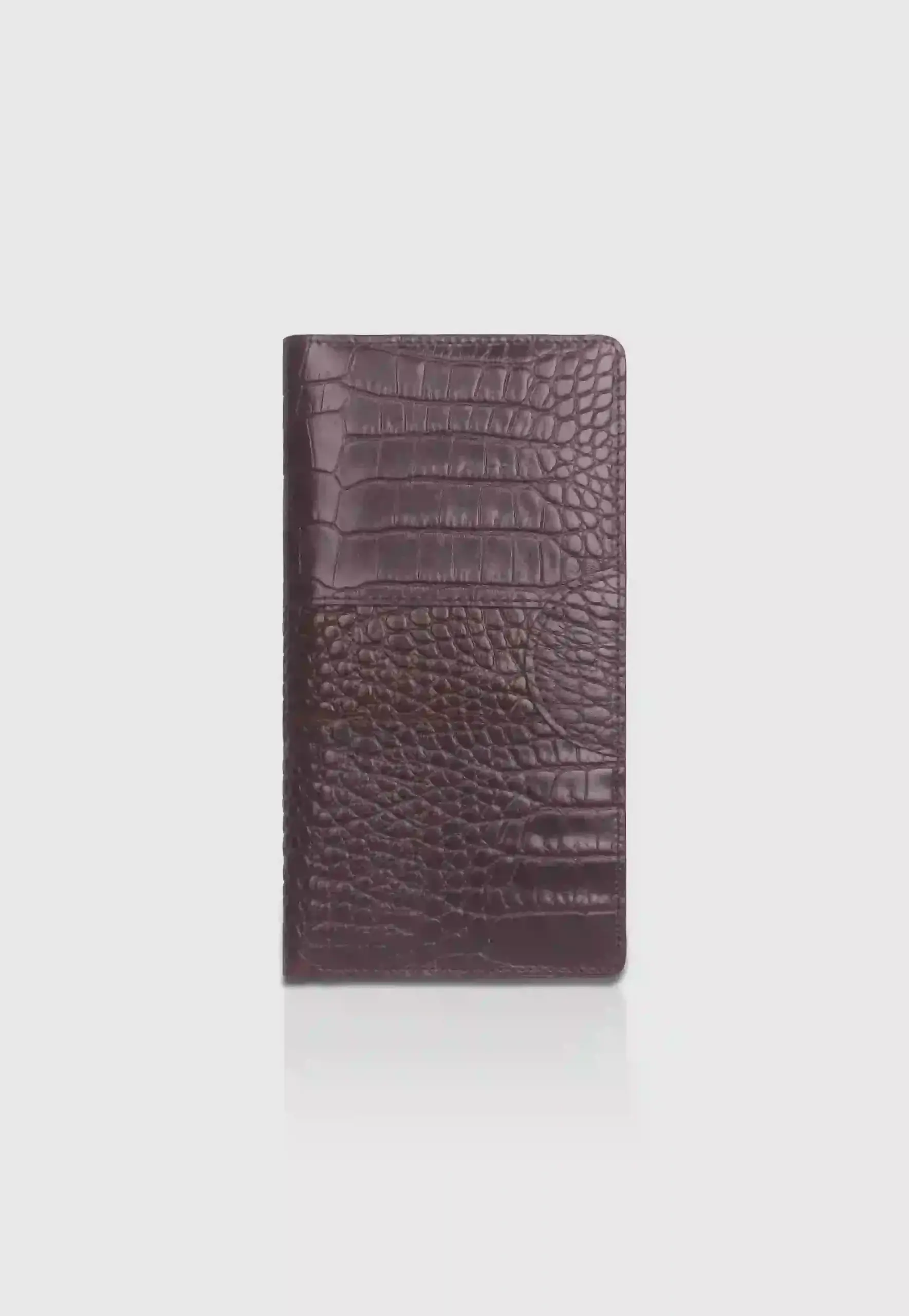 Chocolate Croco Coinpocket Leather Long Wallet