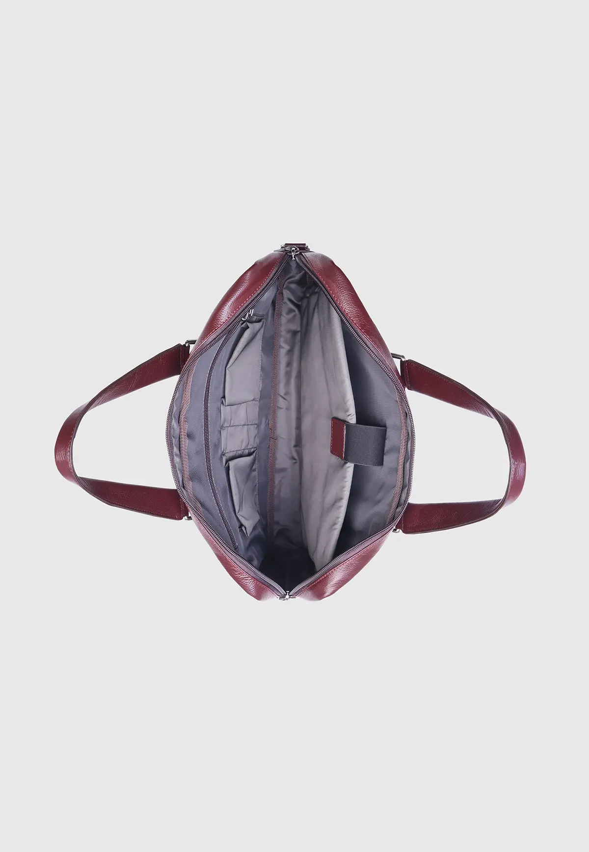 A matte maroon textured leather corporate bag designed for a professional look, featuring sturdy handles and a minimalist design for everyday use. Standard Size